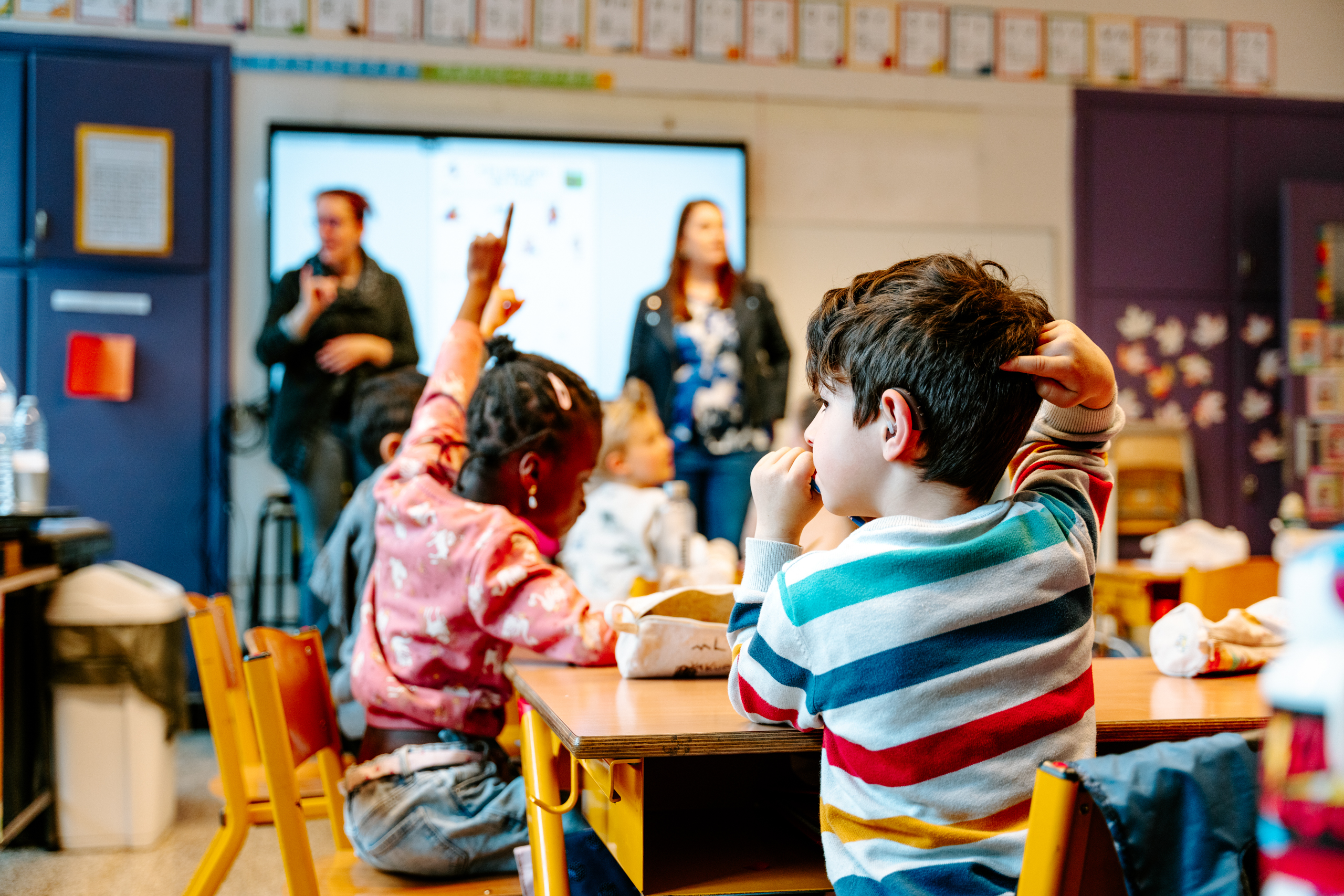 Toutes les activités pédagogiques sont accessibles et réfléchies en fonction de la mixité des profils auditifs des élèves.